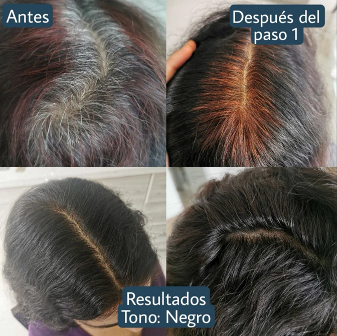 • Tiñe el cabello y cubre las canas de color negro intenso.